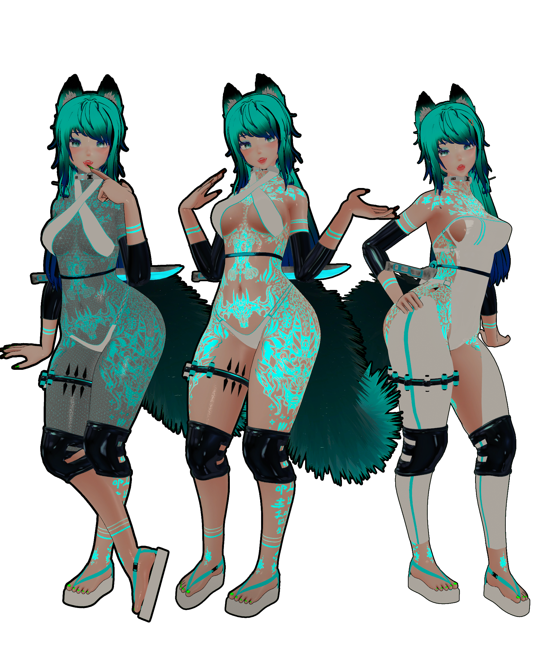 - Ears, Thigh highs, Thong, Bodysuit, Hat, Shoes, Sword, Pouch, Collar, Top, and Accessories - From scratch by Me.